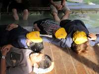 その後の足湯では、ほぼ貸切状態で30分も入ることができ、疲れをとりました。その場にいた方から、冷水を使った入浴方法聞き実践したり、寝転んだりして足湯のよさを十分に味わいました。