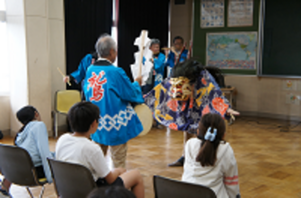 南部領辻の獅子舞保存会の皆様が来校し、獅子舞を披露していただきました。