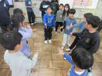 ゲームでは、震源地ゲームをしました。震源地となる人が様々な動きをし、他の人はその動きをまねします。震源地となっている人を当てるゲームです。