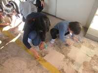 今日の掃除の時間は、全校でふれあいルーム前と図工室前の廊下掃除をしました。