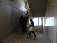 さっそく分担された教室に行き、机・椅子や手提げ掛け、クラスの荷物をせっせと1つ上の学年の教室に運んでいきました。