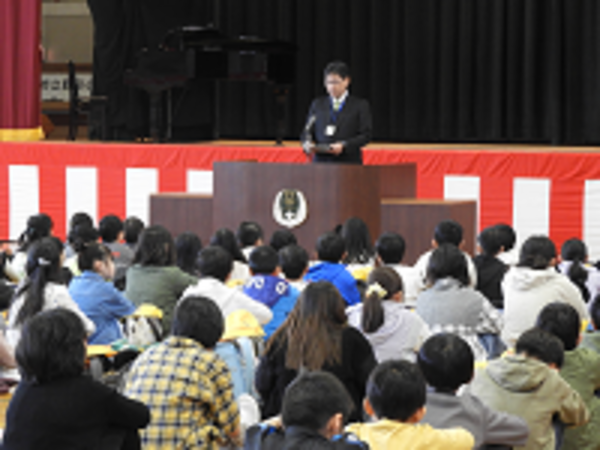 始業式では校長先生のお話を真剣に聞き、担任の先生の発表では歓声があがっていました。