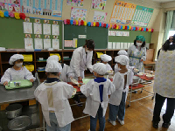 小学生になって、初めての給食でした。